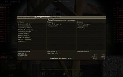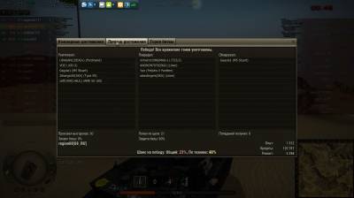 | Победа! Бой: Вестфилд 14 августа 2012 г. 16:59:36 Танк: КВ-5 Получено опыта: 2 326 Получено кредитов: 136 026 Достижения в бою: «Воин», Знак класcности «Мастер»